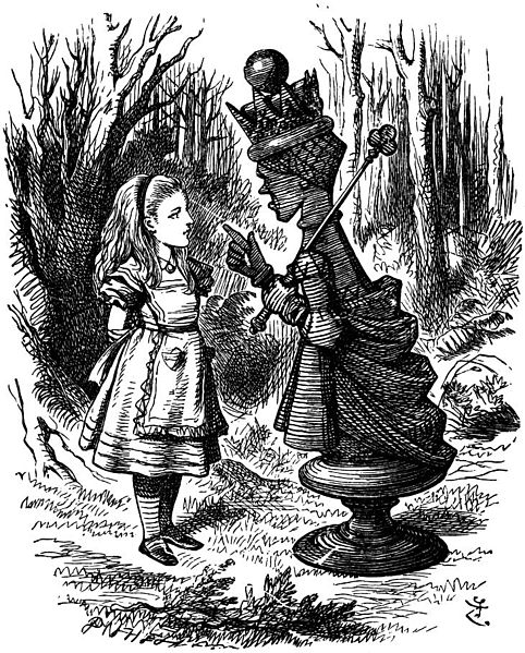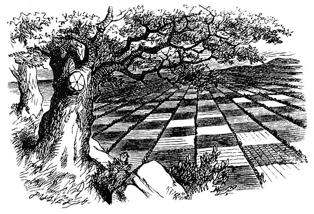 ‘I declare it’s marked out just like a large chessboard!’ Alice said at last. ‘There ought to be some men moving about somewhere—and so there are!’ She added in a tone of delight, and her heart began to beat quick with excitement as she went on. ‘It’s a great huge game of chess that’s being played—all over the world—if this is the world at all, you know. Oh, what fun it is! How I wish I was one of them! I wouldn’t mind being a Pawn, if only I might join—though of course I should like to be a Queen, best.’