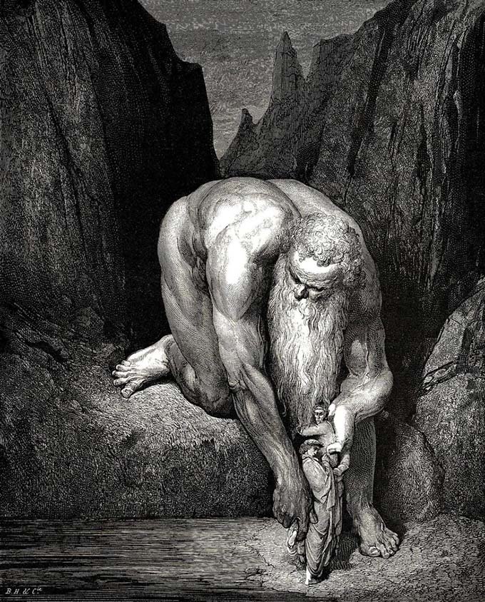 And to Antaeus came, who, full five ells