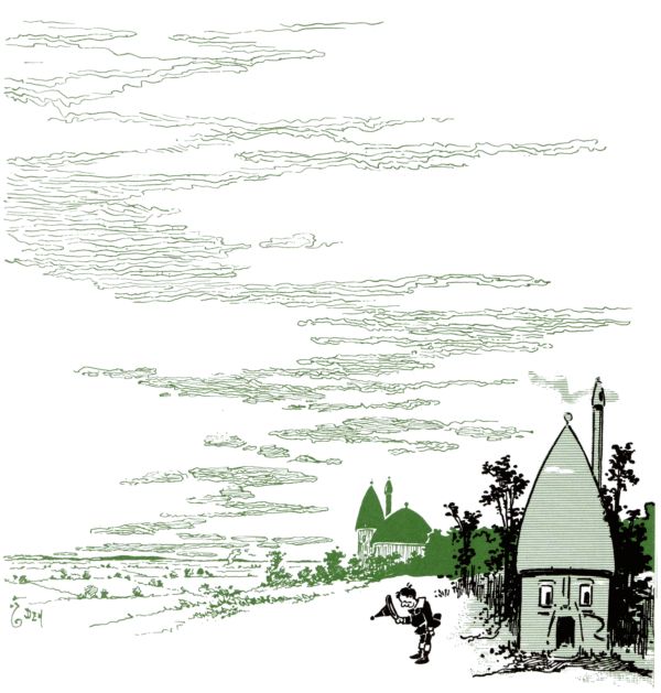 She was surprised, as she walked along, to see how pretty the country was about her. There were neat fences at the sides of the road, painted a dainty blue color, and beyond them were fields of grain and vegetables in abundance. Evidently the Munchkins were good farmers and able to raise large crops. Once in a while she would pass a house, and the people came out to look at her and bow low as she went by; for everyone knew she had been the means of destroying the wicked witch and setting them free from bondage. The houses of the Munchkins were odd looking dwellings, for each was round, with a big dome for a roof. All were painted blue, for in this country of the East blue was the favorite color.