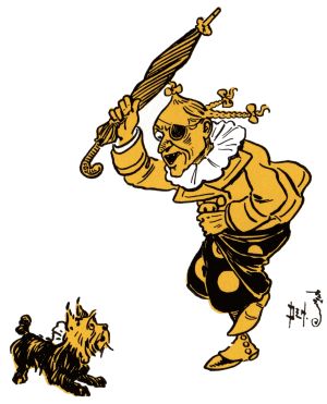The girl had to work hard during the day, and often the Witch threatened to beat her with the same old umbrella she always carried in her hand. But, in truth, she did not dare to strike Dorothy, because of the mark upon her forehead. The child did not know this, and was full of fear for herself and Toto. Once the Witch struck Toto a blow with her umbrella and the brave little dog flew at her and bit her leg, in return. The Witch did not bleed where she was bitten, for she was so wicked that the blood in her had dried up many years before.