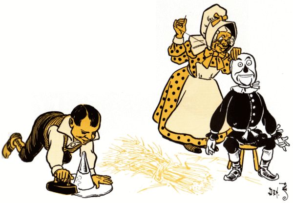 Dorothy picked them up and had the Winkies carry them back to the castle, where they were stuffed with nice, clean straw; and, behold! here was the Scarecrow, as good as ever, thanking them over and over again for saving him.
