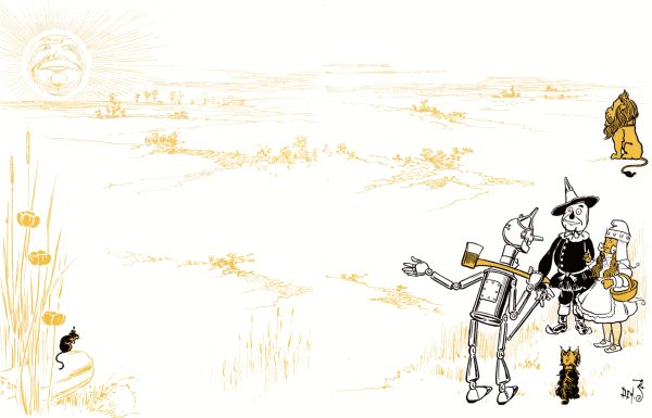 But day by day passed away, and they still saw nothing before them but the yellow fields. The Scarecrow began to grumble a bit.