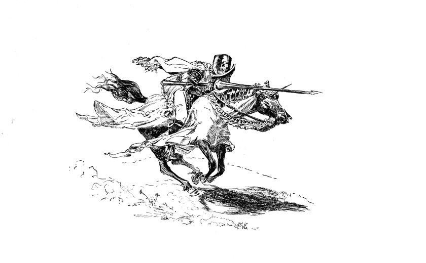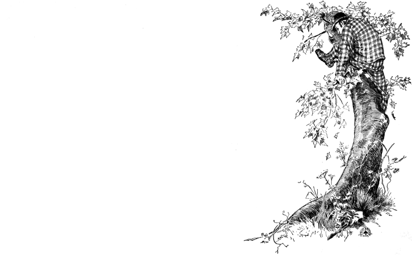 Now what does this man do but fall back a couple of hundred yards and then come rushing at me as hard as he could tear, with his nail-keg bent down nearly to his horse’s neck and his long spear pointed straight ahead. I saw he meant business, so I was up the tree when he arrived.