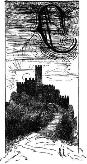 Followed through one winding alley and then another,—and climbing, always climbing—till at last we gained the breezy height where the huge castle stood. There was an exchange of bugle blasts; then a parley from the walls, where men-at-arms, in hauberk and morion, marched back and forth with halberd at shoulder under flapping banners with the rude figure of a dragon displayed upon them; and then the great gates were flung open, the drawbridge was lowered, and the head of the cavalcade swept forward under the frowning arches; and we, following, soon found ourselves in a great paved court, with towers and turrets stretching up into the blue air on all the four sides; and all about us the dismount was going on, and much greeting and ceremony, and running to and fro, and a gay display of moving and intermingling colors, and an altogether pleasant stir and noise and confusion.