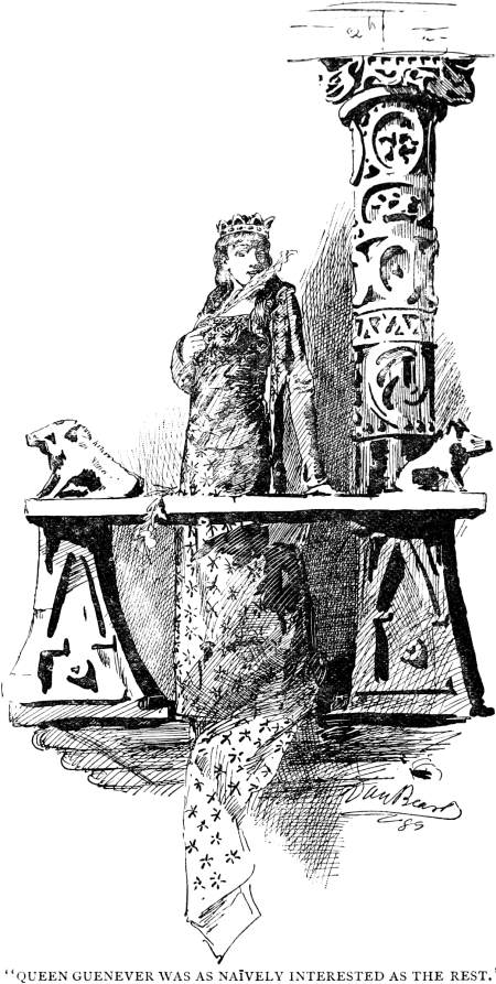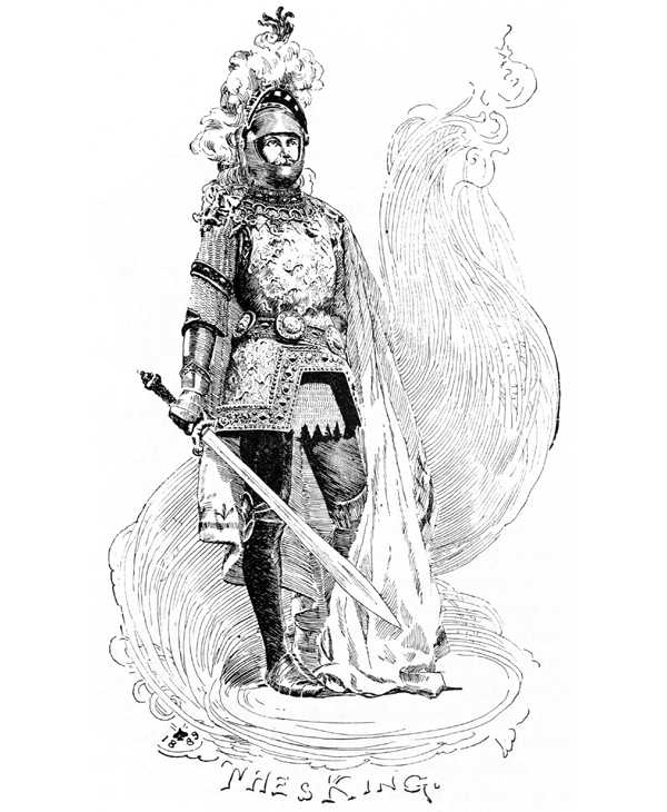 Now Sir Kay arose and began to fire up on his history-mill with me for fuel. It was time for me to feel serious, and I did. Sir Kay told how he had encountered me in a far land of barbarians, who all wore the same ridiculous garb that I did—a garb that was a work of enchantment, and intended to make the wearer secure from hurt by human hands. However he had nullified the force of the enchantment by prayer, and had killed my thirteen knights in a three hours’ battle, and taken me prisoner, sparing my life in order that so strange a curiosity as I was might be exhibited to the wonder and admiration of the king and the court. He spoke of me all the time, in the blandest way, as “this prodigious giant,” and “this horrible sky-towering monster,” and “this tusked and taloned man-devouring ogre;” and everybody took in all this bosh in the naivest way, and never smiled or seemed to notice that there was any discrepancy between these watered statistics and me. He said that in trying to escape from him I sprang into the top of a tree two hundred cubits high at a single bound, but he dislodged me with a stone the size of a cow, which “all-to brast” the most of my bones, and then swore me to appear at Arthur’s court for sentence. He ended by condemning me to die at noon on the 21st; and was so little concerned about it that he stopped to yawn before he named the date.