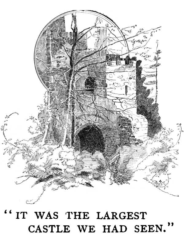 We were approaching a castle which stood on high ground; a huge, strong, venerable structure, whose gray towers and battlements were charmingly draped with ivy, and whose whole majestic mass was drenched with splendors flung from the sinking sun. It was the largest castle we had seen, and so I thought it might be the one we were after, but Sandy said no. She did not know who owned it; she said she had passed it without calling, when she went down to Camelot.
