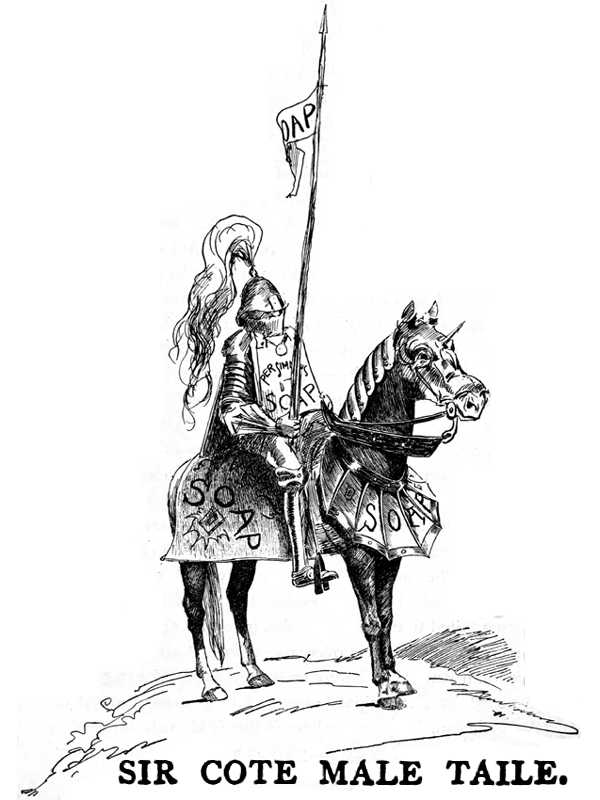 Whenever my missionaries overcame a knight errant on the road they washed him, and when he got well they swore him to go and get a bulletin-board and disseminate soap and civilization the rest of his days. As a consequence the workers in the field were increasing by degrees, and the reform was steadily spreading. My soap factory felt the strain early. At first I had only two hands; but before I had left home I was already employing fifteen, and running night and day; and the atmospheric result was getting so pronounced that the king went sort of fainting and gasping around and said he did not believe he could stand it much longer, and Sir Launcelot got so that he did hardly anything but walk up and down the roof and swear, although I told him it was worse up there than anywhere else, but he said he wanted plenty of air; and he was always complaining that a palace was no place for a soap factory anyway, and said if a man was to start one in his house he would be damned if he wouldn’t strangle him. There were ladies present, too, but much these people ever cared for that; they would swear before children, if the wind was their way when the factory was going.