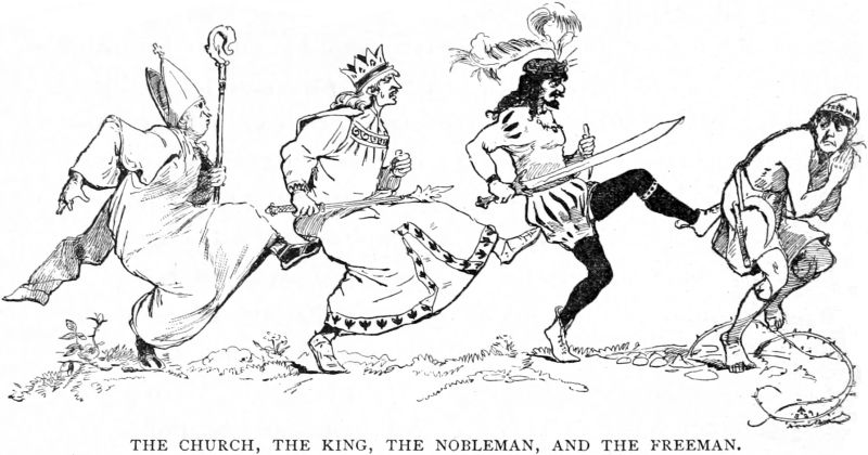 Well, I arranged all that; and I had the man sent to his home. I had a great desire to rack the executioner; not because he was a good, painstaking and paingiving official,—for surely it was not to his discredit that he performed his functions well—but to pay him back for wantonly cuffing and otherwise distressing that young woman. The priests told me about this, and were generously hot to have him punished. Something of this disagreeable sort was turning up every now and then. I mean, episodes that showed that not all priests were frauds and self-seekers, but that many, even the great majority, of these that were down on the ground among the common people, were sincere and right-hearted, and devoted to the alleviation of human troubles and sufferings. Well, it was a thing which could not be helped, so I seldom fretted about it, and never many minutes at a time; it has never been my way to bother much about things which you can’t cure. But I did not like it, for it was just the sort of thing to keep people reconciled to an Established Church. We must have a religion—it goes without saying—but my idea is, to have it cut up into forty free sects, so that they will police each other, as had been the case in the United States in my time. Concentration of power in a political machine is bad; and and an Established Church is only a political machine; it was invented for that; it is nursed, cradled, preserved for that; it is an enemy to human liberty, and does no good which it could not better do in a split-up and scattered condition. That wasn’t law; it wasn’t gospel: it was only an opinion—my opinion, and I was only a man, one man: so it wasn’t worth any more than the pope’s—or any less, for that matter.