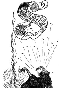 “Lo, I command the fell spirit that possesses the holy fountain to now disgorge into the skies all the infernal fires that still remain in him, and straightway dissolve his spell and flee hence to the pit, there to lie bound a thousand years. By his own dread name I command it—BGWJJILLIGKKK!”