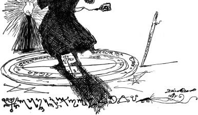 “Behold, I am even now busied with trial of the powerfulest enchantment known to the princes of the occult arts in the lands of the East; an it fail me, naught can avail. Peace, until I finish.”