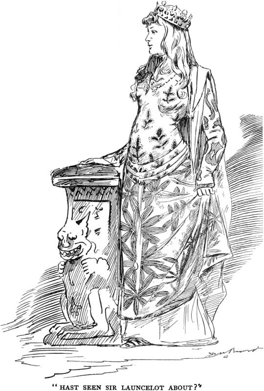 Of course, I changed the Subject. Yes, Guenever was beautiful, it is true, but take her all around she was pretty slack. I never meddled in these matters, they weren’t my affair, but I did hate to see the way things were going on, and I don’t mind saying that much. Many’s the time she had asked me, “Sir Boss, hast seen Sir Launcelot about?” but if ever she went fretting around for the king I didn’t happen to be around at the time.