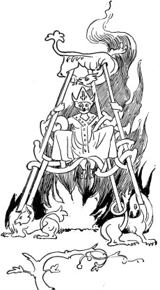 I warned the king that this was not a safe place for strangers. We would better get away from the light, until matters should improve. We stepped back a little, and hid in the edge of the wood. From this hiding-place we saw both men and women hunted by the mob. The fearful work went on until nearly dawn. Then, the fire being out and the storm spent, the voices and flying footsteps presently ceased, and darkness and stillness reigned again.