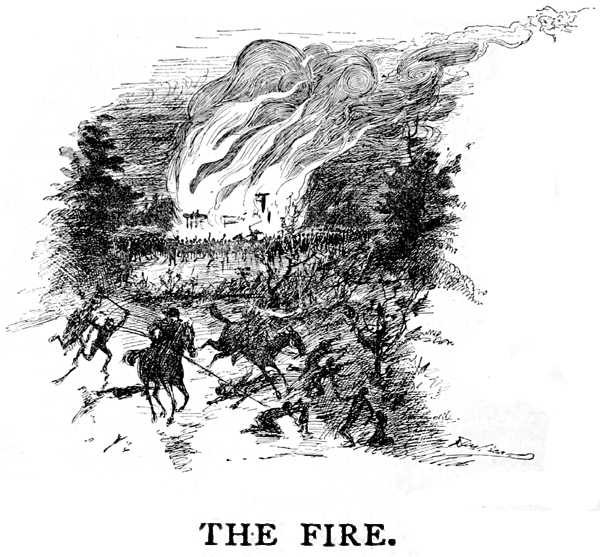 I worked more than half an hour before I got him to change the subject—and even then an outside matter did it for me. This was a something which caught our eyes as we struck the summit of a small hill—a red glow, a good way off.