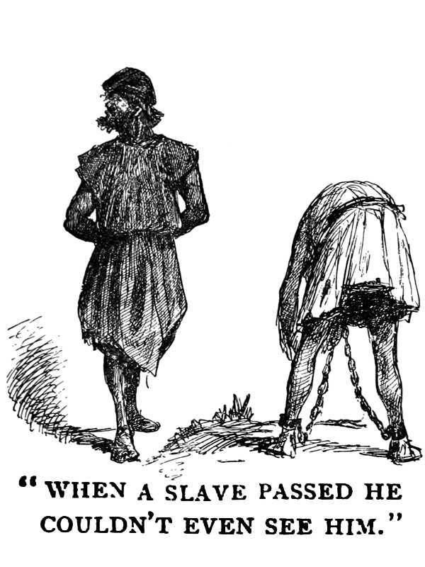 We strolled along in a sufficiently indolent fashion now, and talked. We must dispose of about the amount of time it ought to take to go to the little hamlet of Abblasoure and put justice on the track of those murderers and get back home again. And meantime I had an auxiliary interest which had never paled yet, never lost its novelty for me since I had been in Arthur’s kingdom: the behavior—born of nice and exact subdivisions of caste—of chance passers-by toward each other. Toward the shaven monk who trudged along with his cowl tilted back and the sweat washing down his fat jowls, the coal-burner was deeply reverent; to the gentleman he was abject; with the small farmer and the free mechanic he was cordial and gossipy; and when a slave passed by with a countenance respectfully lowered, this chap’s nose was in the air—he couldn’t even see him. Well, there are times when one would like to hang the whole human race and finish the farce.