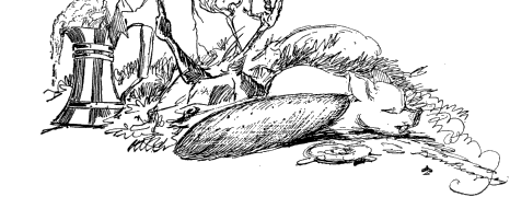From this out, the madam piled up the surprises with a rush that fired the general astonishment up to a hundred and fifty in the shade, and at the same time paralyzed expression of it down to gasped “Oh’s” and “Ah’s,” and mute upliftings of hands and eyes. She fetched crockery—new, and plenty of it; new wooden goblets and other table furniture; and beer, fish, chicken, a goose, eggs, roast beef, roast mutton, a ham, a small roast pig, and a wealth of genuine white wheaten bread. Take it by and large, that spread laid everything far and away in the shade that ever that crowd had seen before. And while they sat there just simply stupefied with wonder and awe, I sort of waved my hand as if by accident, and the storekeeper’s son emerged from space and said he had come to collect.