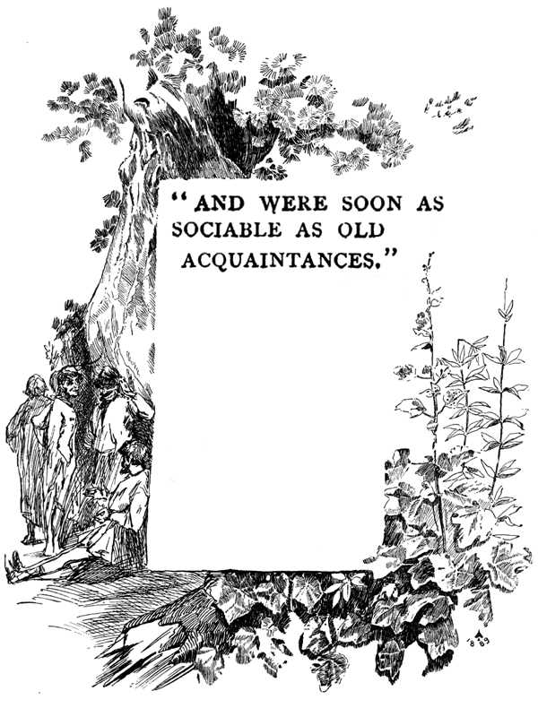 It turned out to be one of those rich and rare fall days which is just a June day toned down to a degree where it is heaven to be out of doors. Toward noon the guests arrived, and we assembled under a great tree and were soon as sociable as old acquaintances. Even the king’s reserve melted a little, though it was some little trouble to him to adjust himself to the name of Jones along at first. I had asked him to try to not forget that he was a farmer; but I had also considered it prudent to ask him to let the thing stand at that, and not elaborate it any. Because he was just the kind of person you could depend on to spoil a little thing like that if you didn’t warn him, his tongue was so handy, and his spirit so willing, and his information so uncertain.