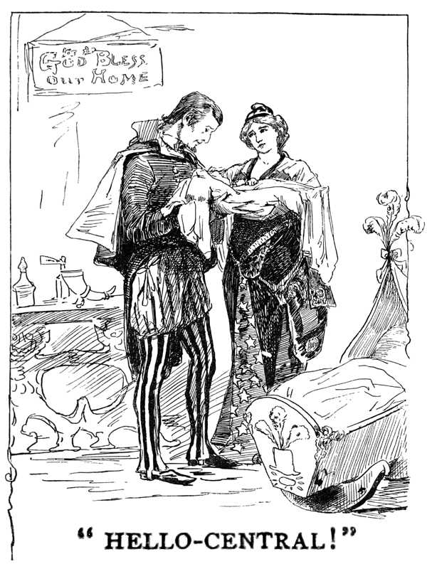 I didn’t laugh—I am always thankful for that—but the strain ruptured every cartilage in me, and for weeks afterward I could hear my bones clack when I walked. She never found out her mistake. The first time she heard that form of salute used at the telephone she was surprised, and not pleased; but I told her I had given order for it: that henceforth and forever the telephone must always be invoked with that reverent formality, in perpetual honor and remembrance of my lost friend and her small namesake. This was not true. But it answered.