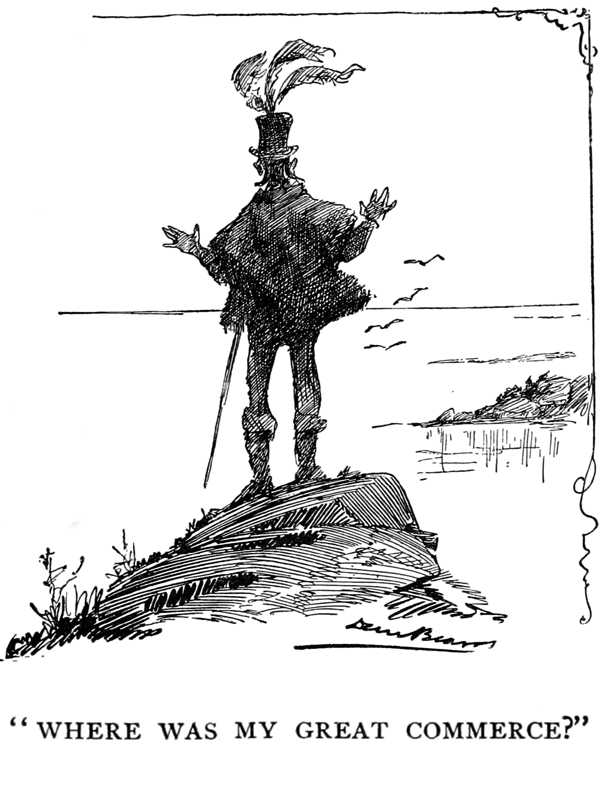 I went swiftly back, saying not a word to anybody. I told Sandy this ghastly news. We could imagine no explanation that would begin to explain. Had there been an invasion? an earthquake? a pestilence? Had the nation been swept out of existence? But guessing was profitless. I must go—at once. I borrowed the king’s navy—a “ship” no bigger than a steam launch—and was soon ready.